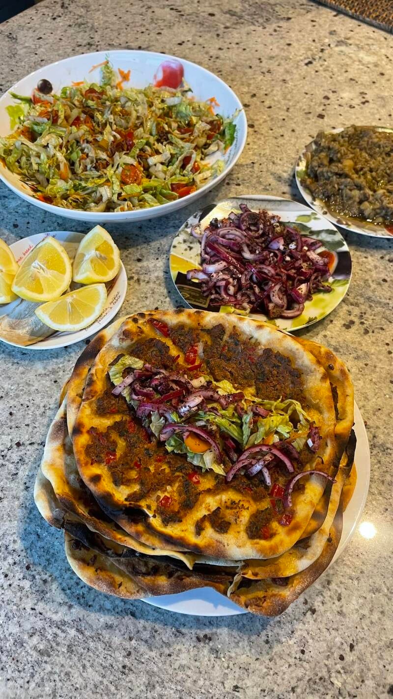# laat de Lahmacun in een pizzapan of oven klaar maken.