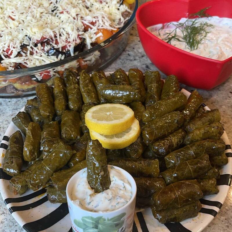 # Deze druivenbladeren in kokend water koken voor 3 tal minuten