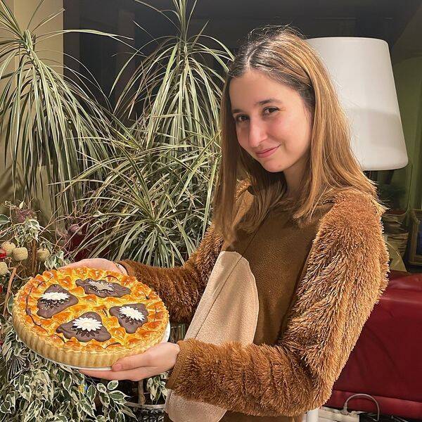 Bereiding: # crème suisse: # verwarm 500 ml melk in een pan op een zacht vuurtje # snij de vanillestokje overlangs en haal er zoveel de zaadjes uit. Doe de zaadjes en de peul in de melk # scheid de eieren en gebruik alleen het geel . Klop de eierdooier met de mixer en voeg de suiker beetje bij beetje tot een ruban # voeg er dan de puddingpoeder toe. Dit helpt voor de binding. # verwijder de vanillepeul uit de hete melk en schenk een deel bij het eiermengsel # roer met de garde # giet nu deze mengsel in de pan met de rest van de warme melk # gebruik een zacht vuurtje en blijft continu roeren met de garde tot je gebonden pudding overhoudt, uitkijken dat de pudding niet aanbrand # bedek dan de bakkersroom met een vershoudfolie. Leg de folie bovenop de pudding zodat er geen velletje opkomt . Laat afkoelen # week ondertussen de gelatine # klop 250 gr room in yoghurtdikte # verwarm een bescheiden room( 20 gr) en de geweekte gelatine in een pan en los op # schenk room en de gelatine bij de half opgeklopte room en roer met de garde # schep de banketbakkersroom nu met de opgeklopte room en roer met de garde# laat dit afkoelen # verwarm de oven op 175 graden # smelt een klontje boter op een zacht vuurtje , neem een borsteltje en bestrijk deze in je taartvorm # bepoeder de vorm lichtjes met een laagje bloem # bekleed de taartvorm met een vel bladerdeeg. Druk het stevig aan in de randjes en snij de overtollige deeg weg. Met behulp van een vork maak in de deeg op de bodem overal gaatjes .# giet de crème suis op de bladerdeeg ( mag niet warm zijn ) # bestrijk de randen met de eigeel goed # leg de tweede bladerdeeg erop. Gaat met een deegrol voorzichtig over. Bestrijk de bladerdeeg volledig met eigeel en hetzelfde met de stukjes hartjes deeg bak ongeveer 30 min # laat de taart afkoelen voeg er wat gesmolten chocolade gemengd met room toe # smakelijk!